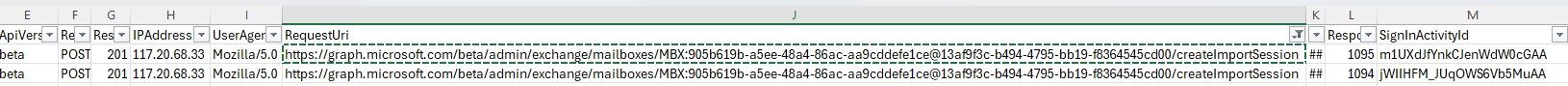As noted earlier, individual message imports aren't directly logged in the Microsoft Graph Activity logs because they don't originate as Graph requests. What you will find, however, are entries for the request to create an import session. This session creation is a Graph request, and it's the prerequisite for subsequent import requests.